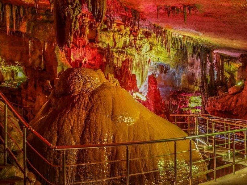Или Пещера Сатаплия, Колхидский лес и следы динозавров. Вы увидите окаменелые следы динозавров и услышите историю их возникновения. Через живописную тропинку вдоль скалы окажетесь в таинственной пещере со сталактитами и сталагмитами причудливых форм. Далее погуляете по Колхидскому лесу и подниметесь на современную смотровую площадку, откуда вам откроется великолепный вид на Кутаиси и долину.