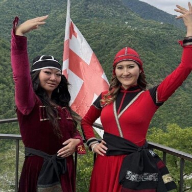 А на десерт — главный акцент тура! Вас ждет незабываемое погружение в грузинскую культуру. Вы станете гостем в настоящей грузинской семье, где вас ждет дух захватывающее зрелище! В программе: зажигательное шоу национальных грузинских танцев и обильный ужин с невероятно вкусными блюдами из местных горных продуктов, которые можно будет сопроводить вином или чачей — на ваш выбор. В подарок — возможность самим принять участие в шоу и попробовать освоить азы грузинского танца. А также вас ждет фотосессия в традиционных грузинских костюмах.