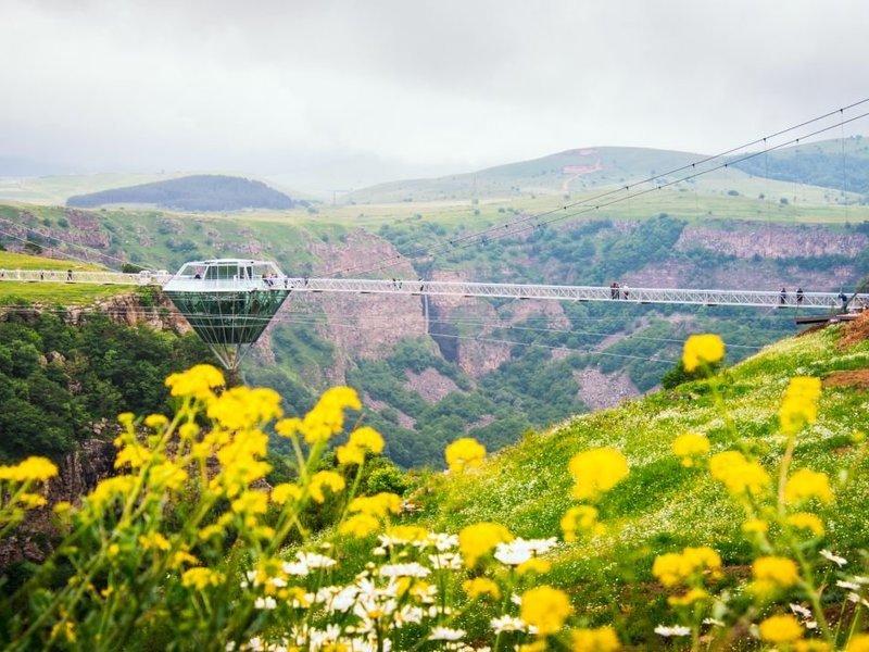 Прогулка к водопадам и по стеклянному мосту: перед вами предстанет Дашбашский каньон, живописный в любое время года. Вы спуститесь по тропе вниз к реке и «плачущей стене» — дивным водопадам. Вернувшись наверх, пройдете по уникальному мосту, открытому в 2024 году, узнаете о его строительстве и характеристиках;