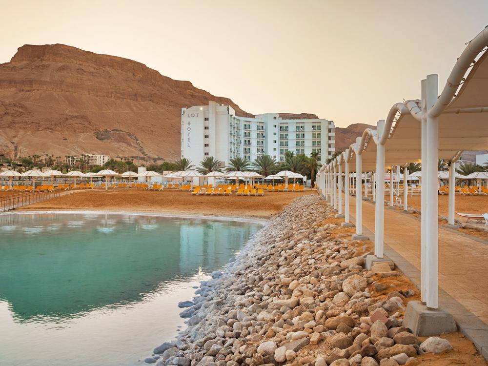 Спа-отель "Лот" выгодно расположен на первой линии и имеет прямой выход к благоустроенному пляжу Мертвого моря. Пляж оборудован навесами, шезлонгами и открытыми душевыми с пресной водой. Спа отеля представляет из себя оздоровительный комплекс, который включает бассейны с морской и пресной водой, сауны, джакузи, удобные раздевалки и душевые.