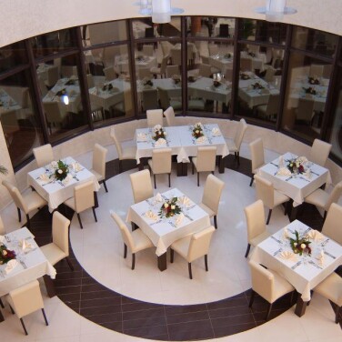 Завтрак очень однообразный, каждый день практически одно и то же – помидоры, огурцы, брынза, макароны, тушёные овощи, омлет, булочки (довольно вкусные), мюсли. Ребенок ел местную простоквашу («кисло мляко») с большим удовольствием – с молочными продуктами в Болгарии всё отлично. Зато всё очень плохо с кофе – не только в этом отеле, а и во всём курорте, лучше не брать и не пробовать его вообще (даже в Макдоналдсе в Бургасе он ужасный), а если очень хочется – то купить в супермаркете растворимый и пить в номере. На завтрак был некий чай (пить по мне невозможно) и некий кофе (тоже), но может быть непритязательным подойдёт. Также соки из концентрата.