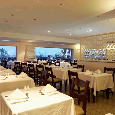 Главный бар Панорама находится рядом с пляжем. Есть кофейный аппарат, каждый день пила горячий шоколад, вкусно. Всегда можно заварить чай (мята, каркаде, ромашка были любимыми) или заказать бармену коктейль. Алкоголь не пили, сказать про него не могу. У бара расположена гриль станция, там подают бургеры, пиццу, хот доги и картошку фри. Между приемами пищи в главном ресторане здесь можно перекусить обычными блюдами. Есть автомат с мороженым, вкусы меняют переодически. По понедельникам фруктовый фестиваль с манго, клубникой и другими фруктами. Ну и главная фишка бара - места в первом ряду для просмотра заката, тут он потрясающий. Если спуститься от бара ниже к морю, можно увидеть рифовых акул, они небольшие, человеку точно не опасны, но интересно посмотреть, плавают там каждый день.