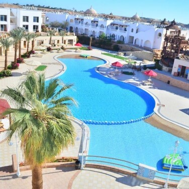 Прилетели мы ночью 4 февраля. Туроператор Анекс встретил тепло, и уже в трансфере началось волшебство: ночной Шарм-эль-Шейх встретил нас сияющими огнями. Но когда мы заехали на территорию отеля, у нас буквально перехватило дух! Всё сверкало золотом, переливалось иллюминация праздника нас накрыла с порога. Поселили нас мгновенно и сразу пригласили на ужин, несмотря на поздний час — сервис высший пилотаж!