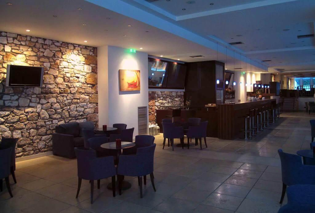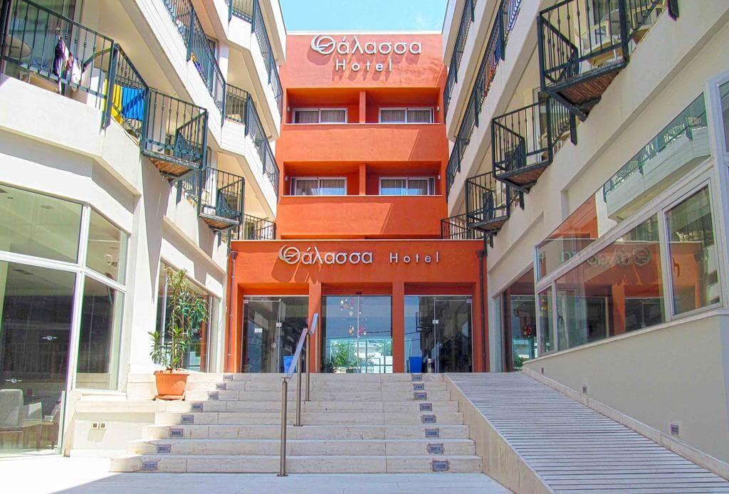 Разочаровал пляж, т.к. в этой части при заходе в воду одни каменюки и в воду практически не зайти. У меня разбитая коленка заживала больше месяца((( Зато можно ловить крабиков и мальков прямо напротив отеля, чем мы и развлекались с ребенком с использованием детского инвентаря, который можно взять бесплатно в отельной подсобке. Можно арендовать водные мотоциклы и отъезжать вправо в сторону Agia Marina Beach Resort, там пологий заход в воду и нет камней. Пешком туда идти жарко,долго и неудобно, потому что в местах полнорезов на берегу насыпан щебень/галька, который жутко нагревается на солнце. Несмотря на волнорезы, часто были большие волны и вывешивали красный флаг.