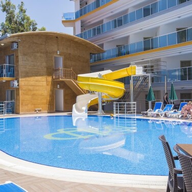 Район - хороший район, в 10 - 15 минутах ходьбы от центральной части Алании, отличные рестораны поблизости, которые мы были вынуждены использовать из-за плохого качества еды.