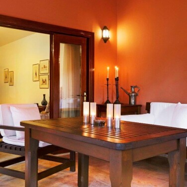Мы влюбились в отель как только зашли, массивная резная деревянная дверь приглашает в зону ресепшена, которая покоряет своим масштабом и аутентичностью.