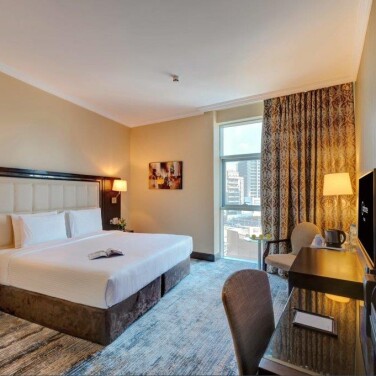 Приехали в отель в 10:00, заселение стандартно в 14:00, но на ресепшене нам сразу предложили заселиться в номер нашей категории на 2 этаже. Большой плюс, чтобы не ждать 4 часа и можно сразу после перелета заселиться, принять душ. Но мы хотели номер повыше, поэтому все равно пошли гулять до 14:00 и нас заселили в номер на 7 этаже. Ставим плюс за возможность заселиться сразу, потому что для семей с маленькими детьми или старшему поколению это будет очень важно. А если вы готовы подождать, ваши вещи заберут под охрану, и вы сможете сходить пока оформить симку и поесть, ведь УЧТИТЕ, что завтрак в день заезда не включен, если у вас ночной-утренний прилет. При заезде сразу нужно оплатить тур налог 120 дирхам в нашем случае, депозит не берут.