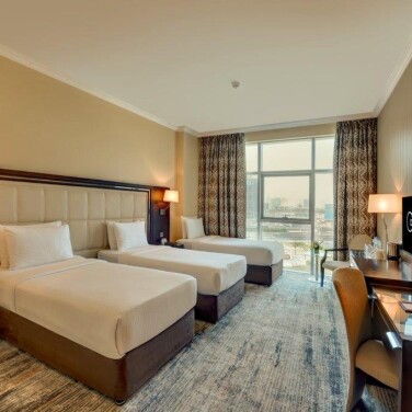 Если вы ранние пташки, и любите просыпаться в 5 утра, либо у вас очень крепкий сон, то вас это не потревожит. Нам, наоборот, это добавляло колорит и культуры в пребывании в ОАЭ. Но если вы чутко спите, и не хотите просыпаться в 5:30, то тогда в этом отеле лучше доплачивать сразу при бронировании и брать номер Creek View. Потому что City View выходит прям на мечеть, и даже со всеми закрытыми окнами вы будете слышать мечеть как за стеной.